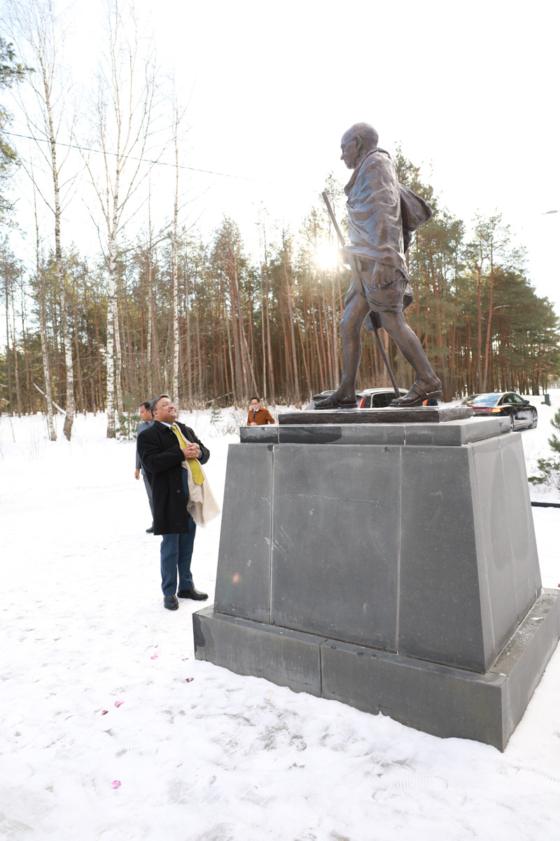 Floral tribute to Mahatma Gandhi at his statue recently installed in Tallinn.
